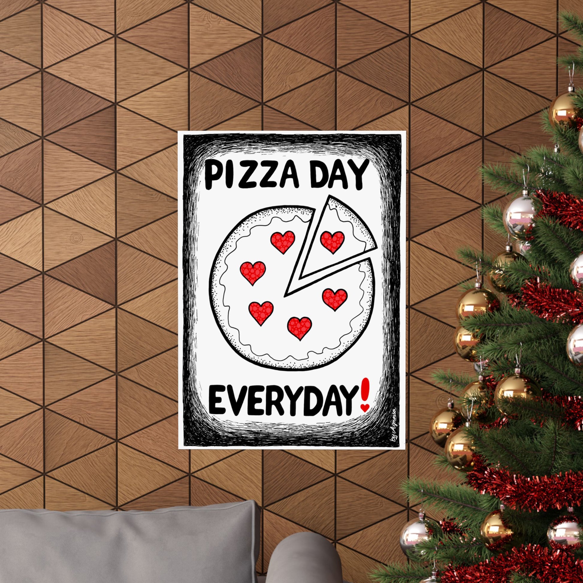 This matte vertical poster celebrates pizza with bold, original artwork made for people who live for slices and late-night cravings. The image carries bright, saturated color without shine, so it reads like a print you’d find in a cozy pizzeria or over a home kitchen counter. Hang it where friends gather, where dough gets tossed, or on the wall of a restaurant corner to add warmth and personality. The archival paper and giclée printing mean the artwork stays vivid through everyday indoor light, while the muted matte surface keeps reflections low and the composition front and center. It feels like a small, joyful statement about craft, comfort, and good food—meant to spark conversation and invite another slice.